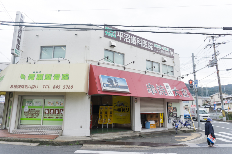 「関西スーパー」と「串焼大倉」がある交差点を左折。