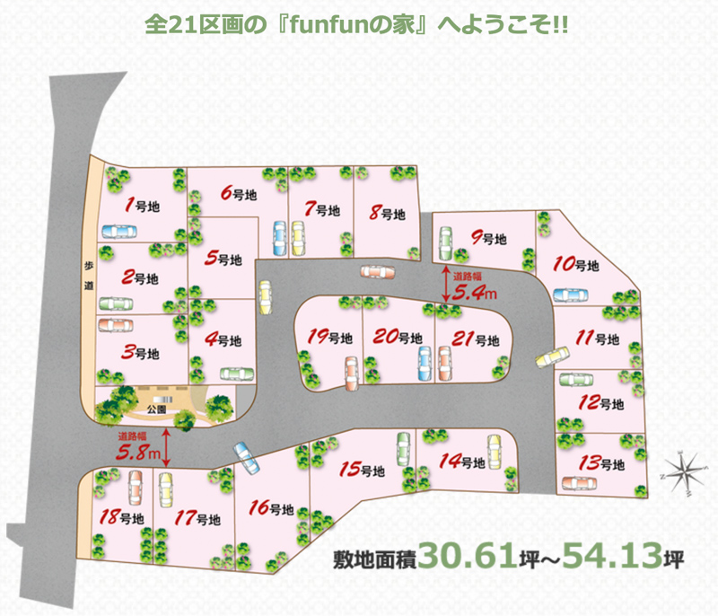 全21区画で、敷地面積は30.61坪からなんと54.13坪あります!ひろーーーい!!