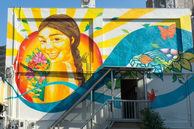 力強くて個性的なこの壁画は、"成長(grow up)"をテーマに、自然界に溢れるエネルギーを有機的な線で描くアーティスト・ペインター、小野 留依聖(オノルイーゼ)さんがペイント。
