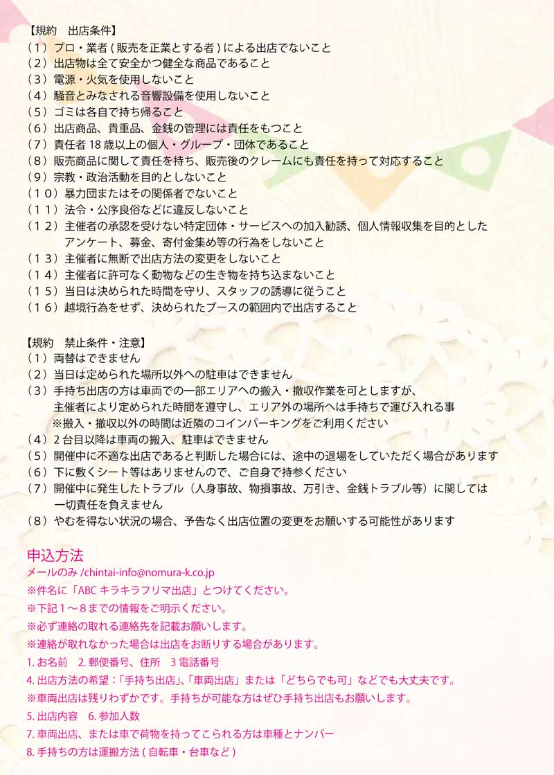 ※メールでの応募の際は件名に「ABCフリマ出店」とつけてください。