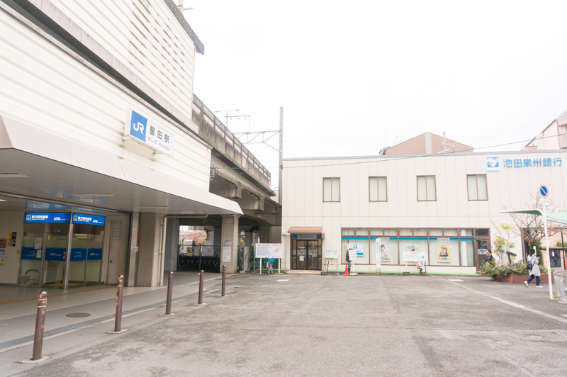 徒歩10分のところにあるJR星田駅周辺には、銀行や歯科医院などがあります。