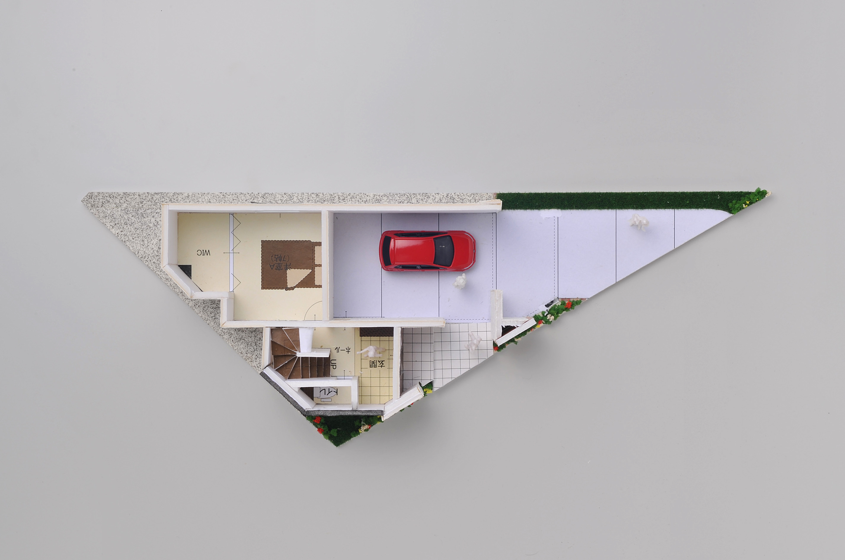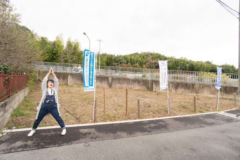 こちらの三角形の土地、モデルハウスが建つことが決まったんですが、例えばこんな一見使いにくそうな三角形の土地でも自分のライフスタイルに合わせた設計が出来たりするんです。」