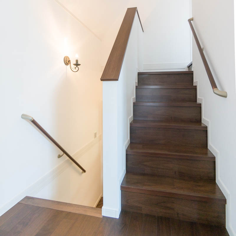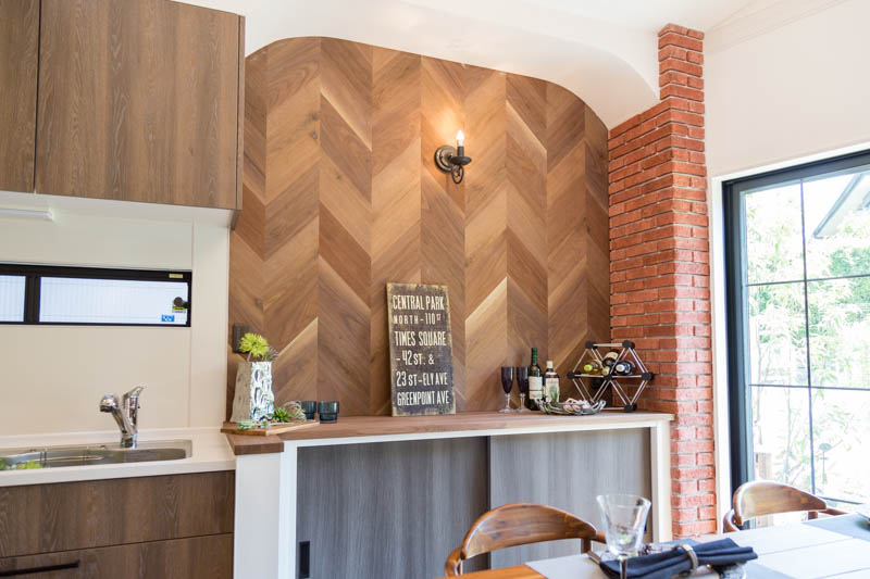 濃い木目調のフローリングやウッドパネルが落ち着いた雰囲気を演出してくれています。