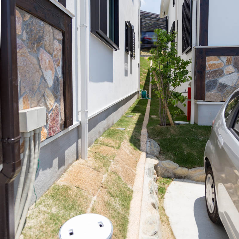 ここにも植樹がされており、感覚的に家と家との境界線がわかるようになっています。