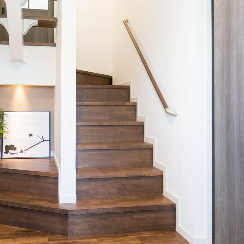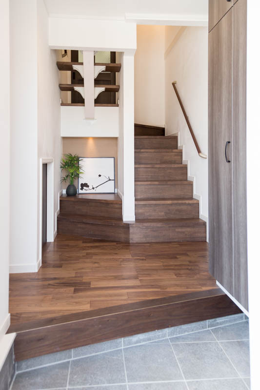 コチラのモデルハウスは傾斜地に建てられていることもあり、同じ1階でもフロアに高低差がある作りになっているんです。
