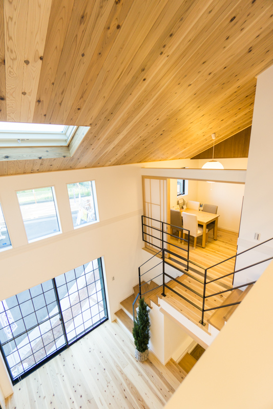 勾配天井は室内をより明るく、広く見せてくれます。