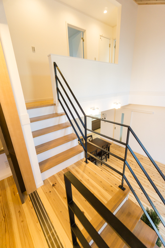 階段はアイアンの手すり。