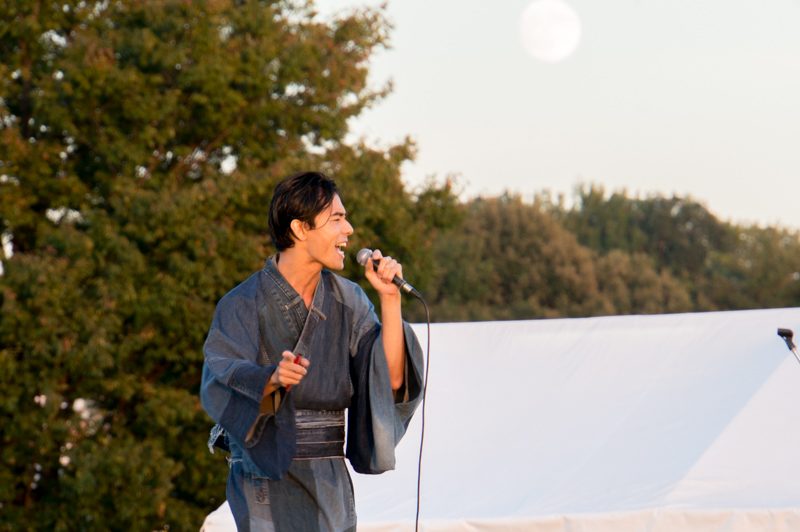 枚方つーしん所属の歌手。マイク一本で(つまりアカペラで)枚方を(勝手に)唄いあげ、イベントなどにもちょこちょこ出演しています。(写真は10/4に行われた「第3回 千人の月見の宴」のようす)