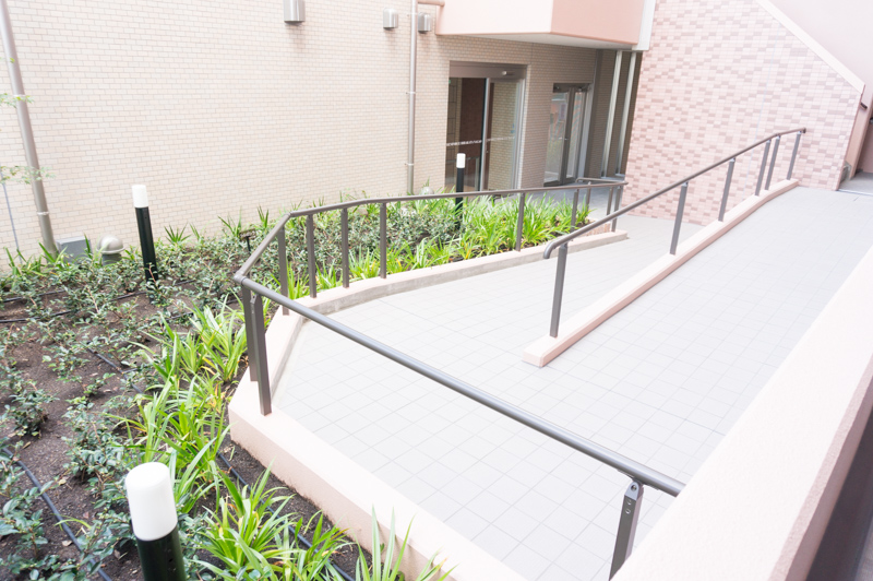 目の前にスロープがあるので、ベビーカーや車いすでもスーイスイ♪