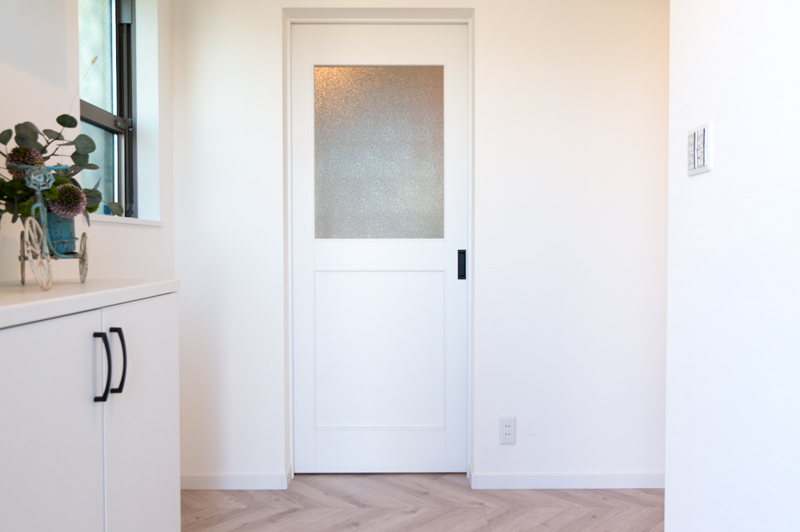 正面はリビングへ続く引き戸。ガラスが入っていて、かわいいですね