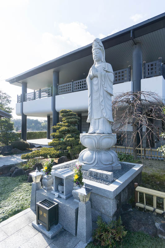 事務所の前には紫峰観音像、