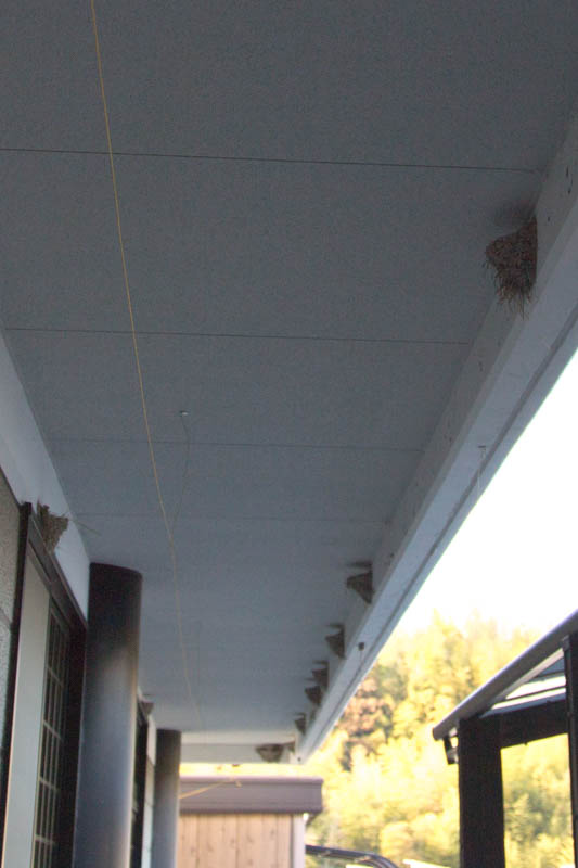 管理事務所の軒下にツバメの巣がいっぱい!