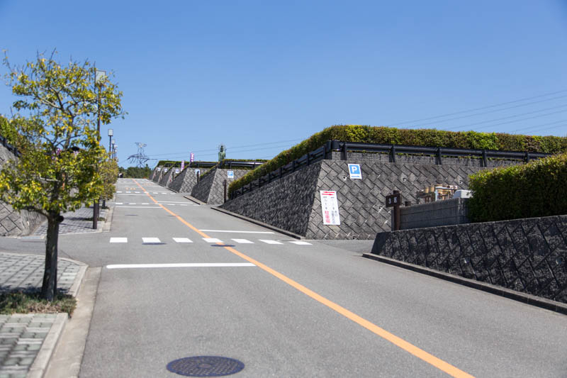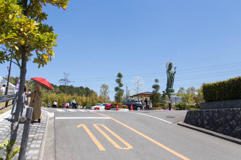 霊苑全体を見守る「施無畏観音大菩薩像(せむいかんのんだいぼさつぞう)」が姿を現します。観音様の足下にも芝桜が咲いていてキレイでした。