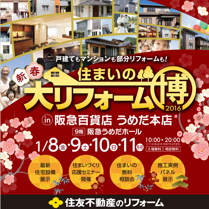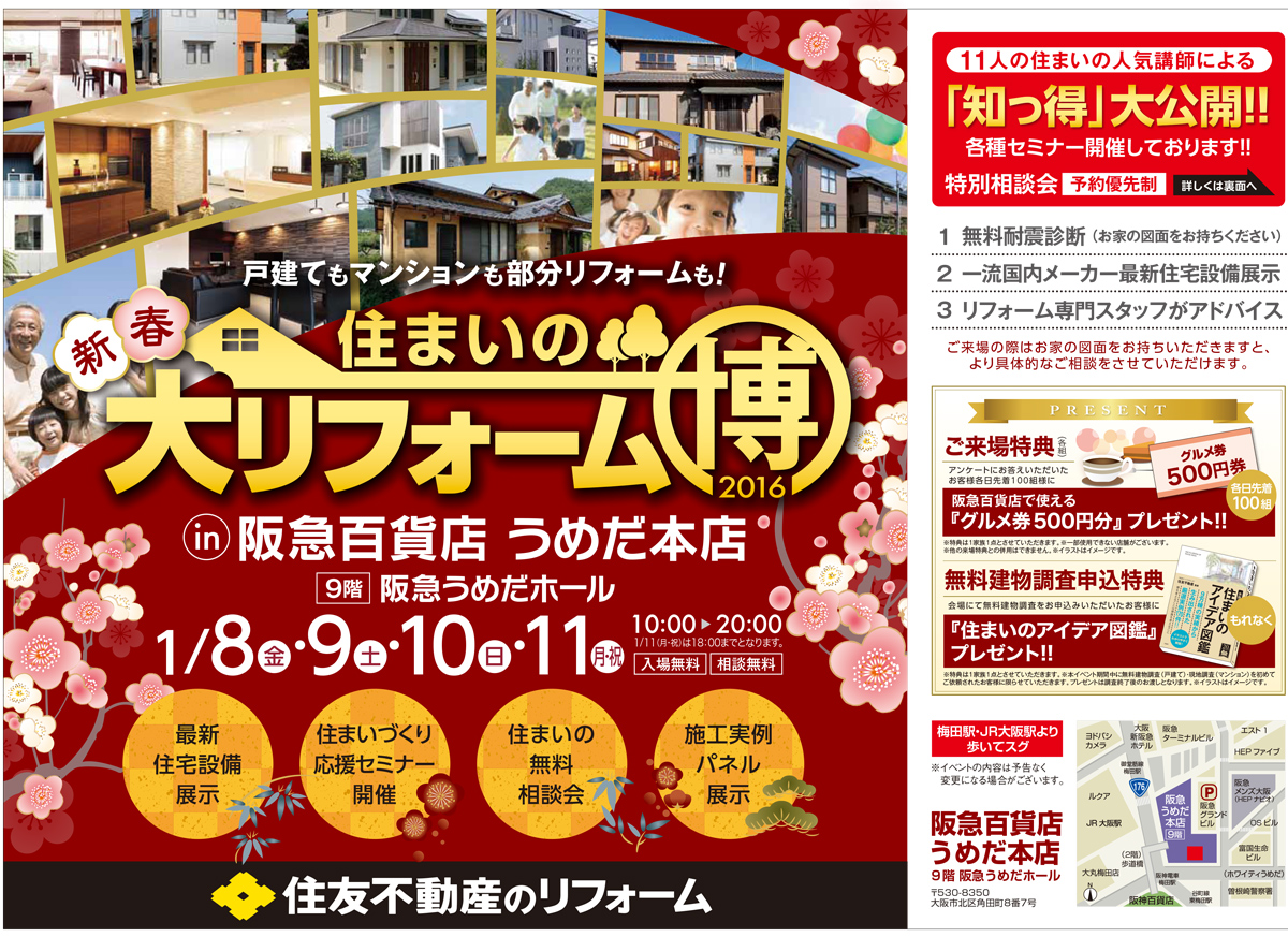 「住まいの大リフォーム博2016」1/8,9,10,11開催!「収納力1.5倍UP術」「開運間取り講座」など無料セミナーもモリモリ!【ひらつー不動産】