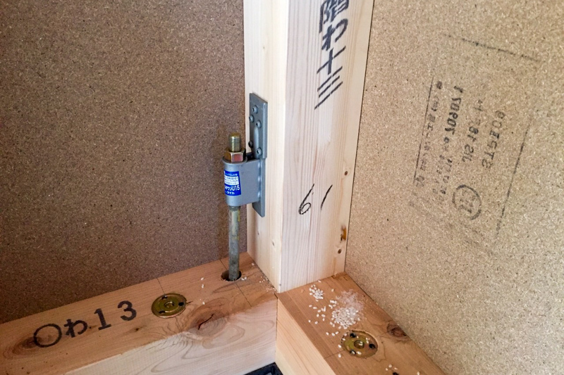 「こちらはホールダウンアンカーと言いまして、地震などで建物が揺れた場合に家が倒壊することを防ぐ金物です」