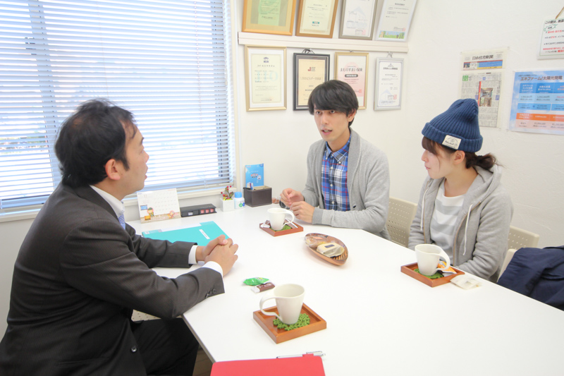匠建枚方の営業マンでありファイナンシャル・プランナーでもある渡邊さんに、注文住宅について詳しく説明してもらった二人。注文住宅への夢は広がるばかり…