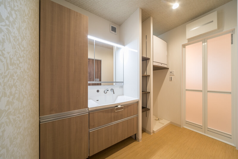 洗面も作り付けの収納でスッキリ!