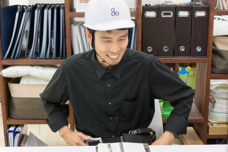私たちは営業部ですが、天候が悪くなると予測される場合は建築途中の現場が雨で濡れないように養生(破損を防止するための措置)を行ったり、現場のお手伝いもするんです。