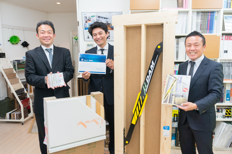 起こりうる災害に備えて、どんな仕組みで家を守っていくのかという方法もご提案できるように、現物を置いています。