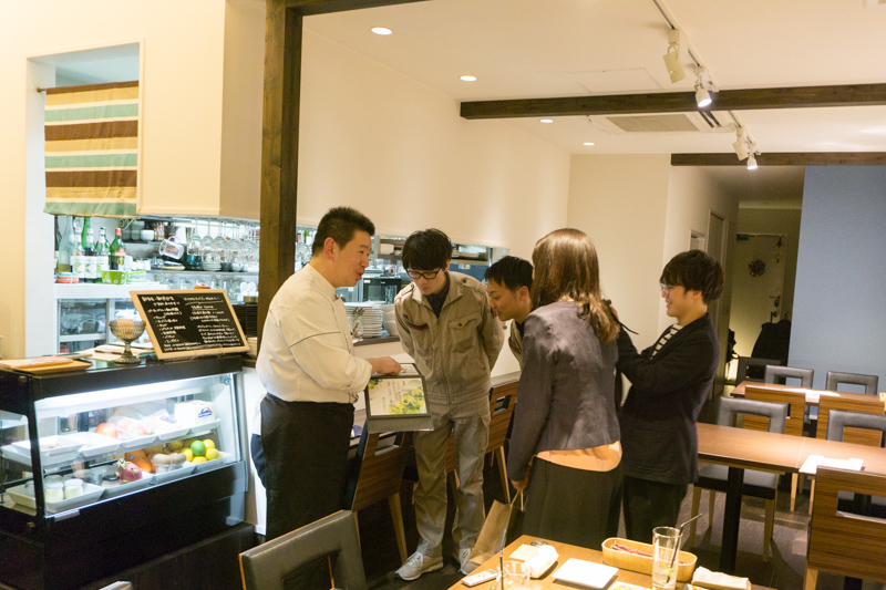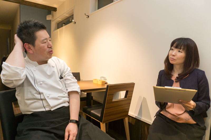 お手洗いのところにショップカードを置かせていただいて、それがキッカケでシェフからお電話をいただいて…