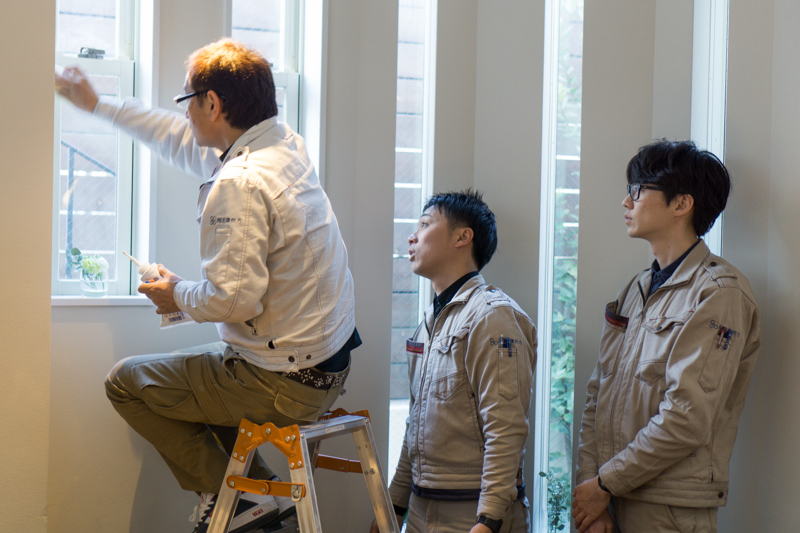 今回のアフターメンテナンスには匠建枚方若手社員が同行。