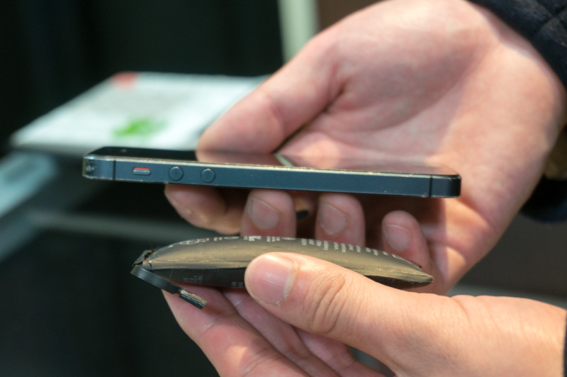 これがiPhoneのバッテリーで使われているリチウムイオン電池です。