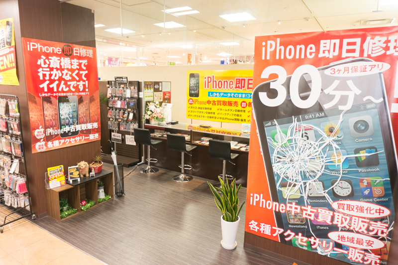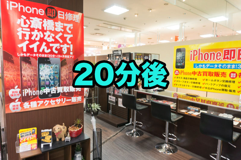 バッテリー交換修理は20分ほどで終わるので、お買い物帰りやちょっとした用事の合間に交換できますよ♪