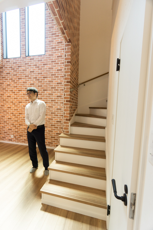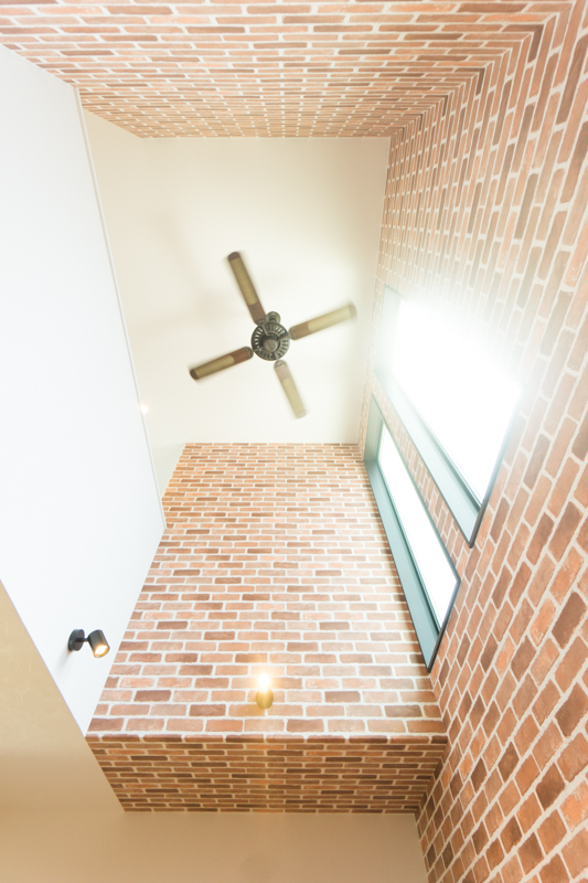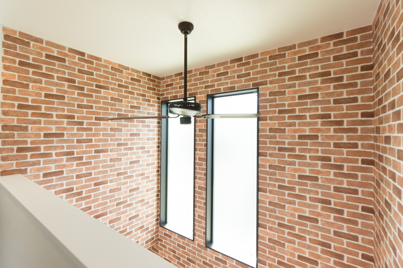 2階からも、ファンとレンガのクロスがアクセントになっていますね〜!