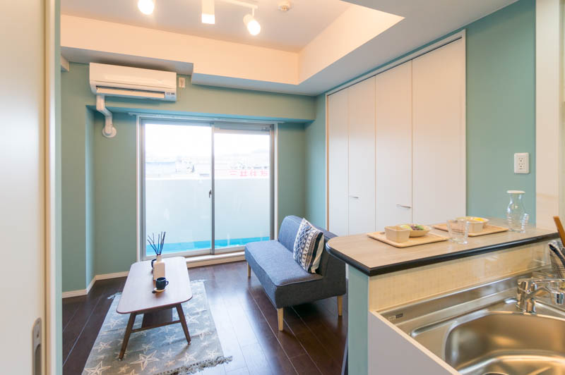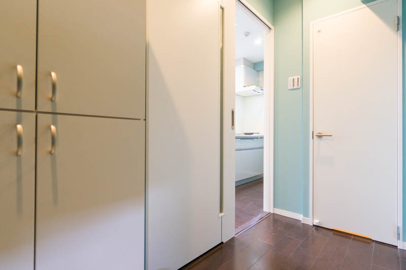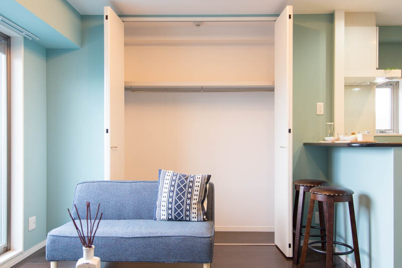 コチラのお部屋はキレイなライトブルーで塗られています。