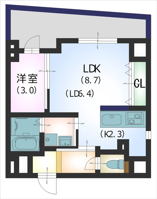 ではでは、まずご紹介するのは3階にある302号室 ↓