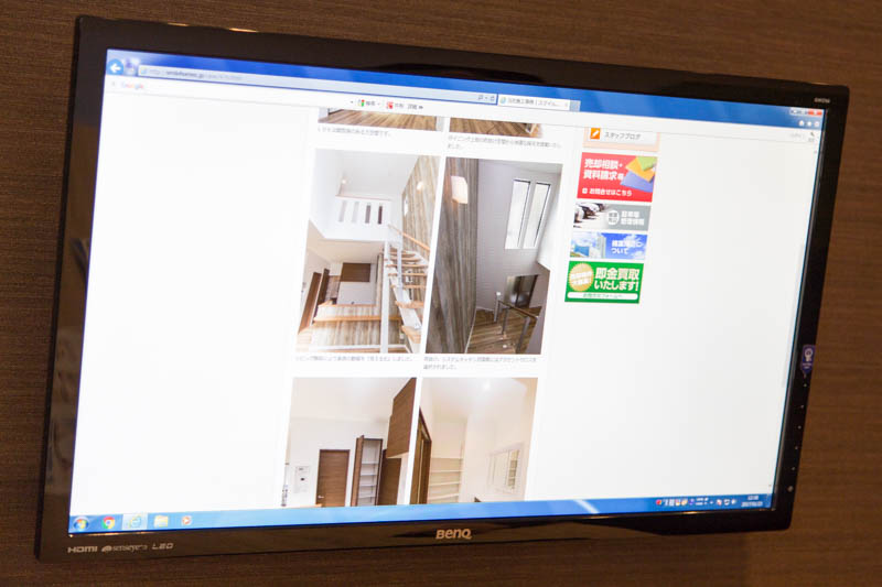 モニターはパソコンの画面になっていて、お客さんとお話をしながら一緒に物件の情報を調べることができるんです。