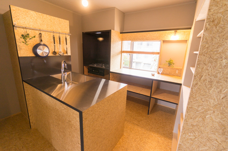 まずはDIY風に見せる収納で調理器具をディスプレイ!