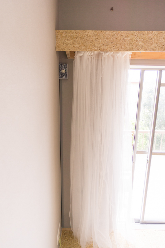 それだけじゃない!カーテンレールの部分にも麦わらボードで囲いがしてあるので、生活感がなくなっていい感じ。