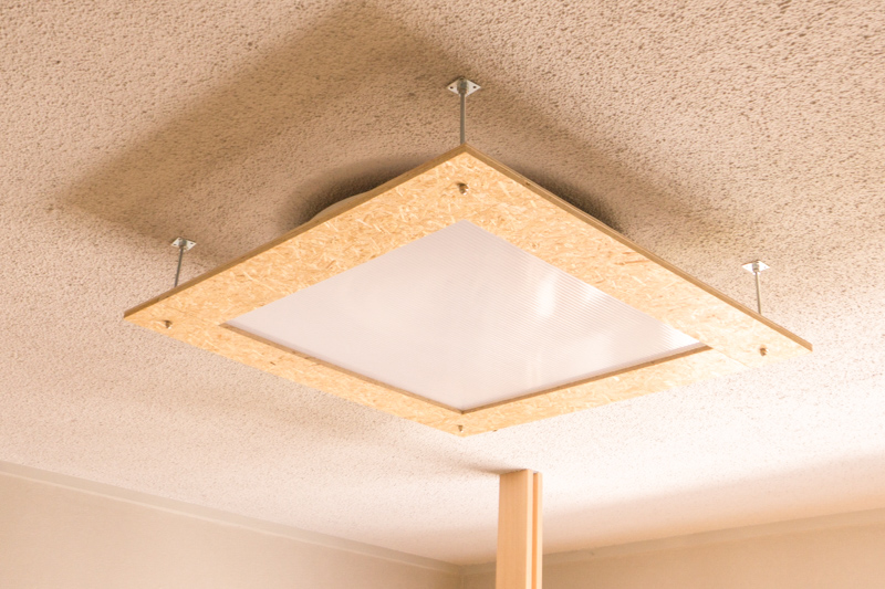 照明カバーも麦わらボードを利用。