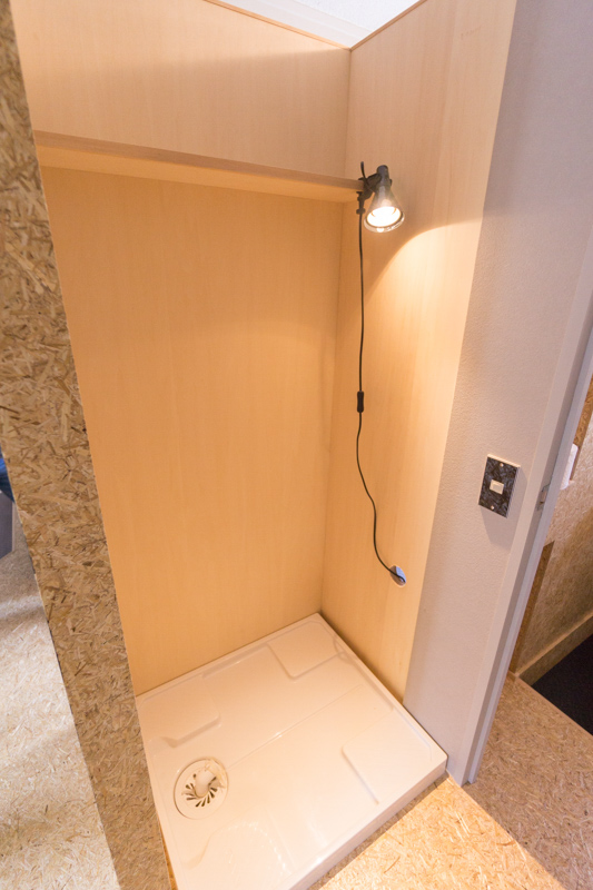 洗濯機置場は玄関から見えないように、壁の反対側に配置されています。