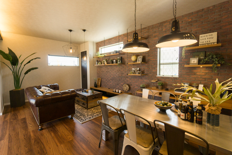 16号地「LDKに本物レンガ!モダンな和室があるおうち」より