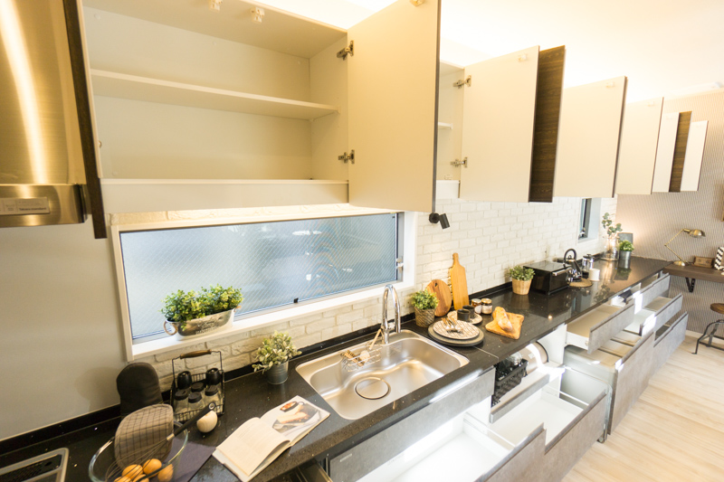 こんなに入れる物があるだろうかと言うくらいにものすごい収納力!!細やかな気遣いが感じられるキッチンになっています。