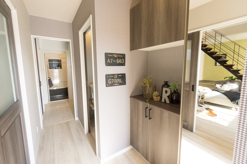 玄関を入ると、なんだかほっとする優しいニュアンスカラー。