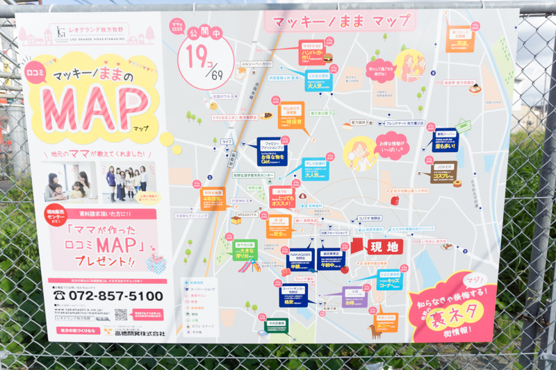牧野在住のママたちに街の口コミを教えてもらい、そのまま落とし込んだ地図。
