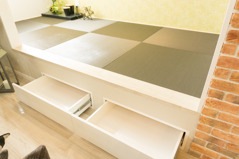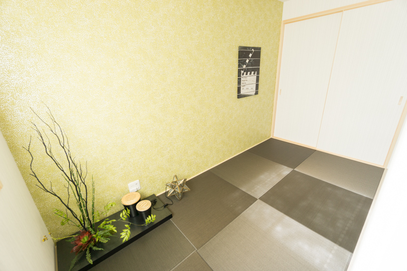 グレーの琉球だたみもスタイリッシュでカッコいい!雰囲気を合わせづらい和室も妥協せず取り入れられています。