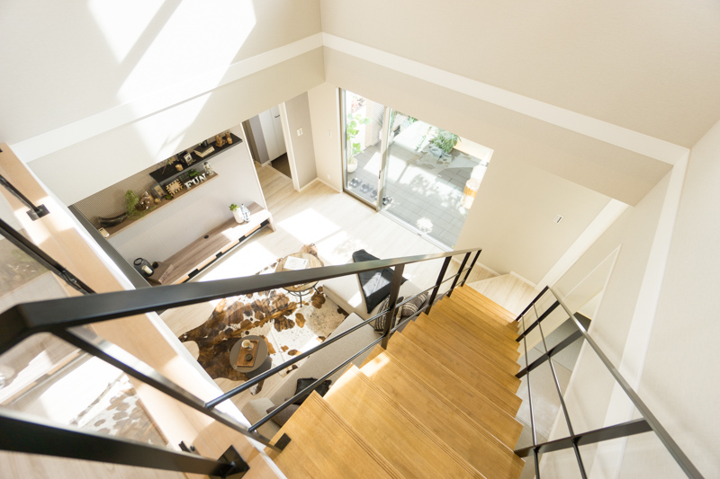 「この手すりの下の部分が透明ガラスになっているのも抜け感を出すポイント!」