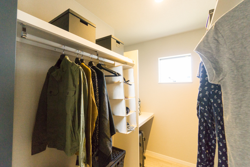こちらがウォークインクローゼット(2.7帖)。窓があって明るいのもポイントです!