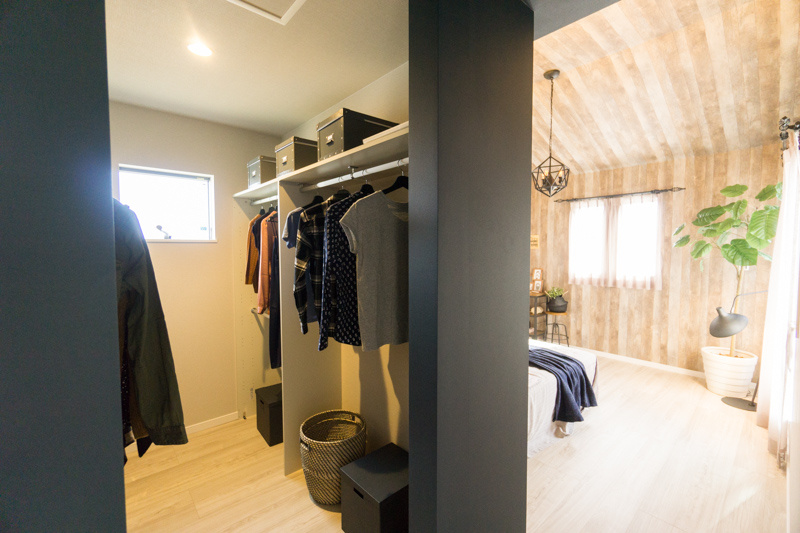 手前に大きなウォークインクローゼット、奥が寝室。
