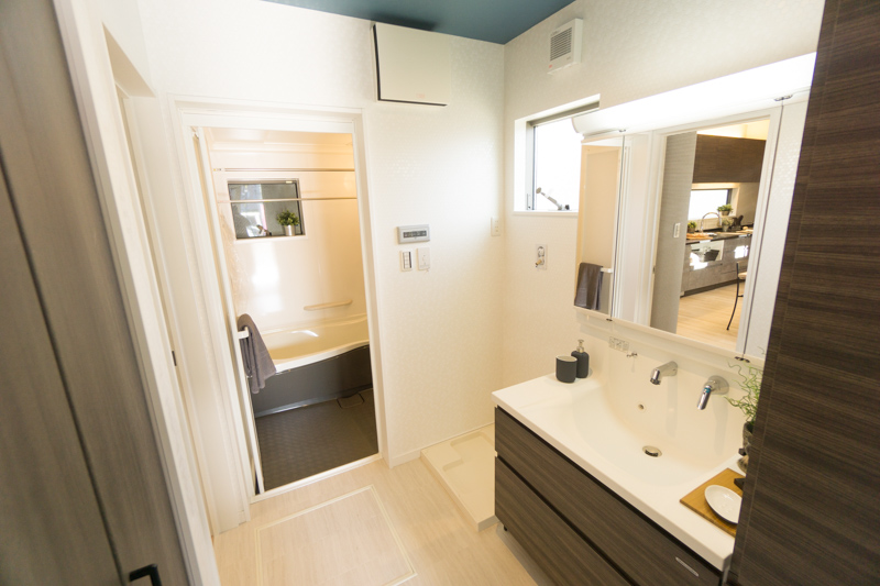 玄関の突き当たりは洗面スペースとお風呂。