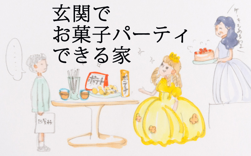 「『この家玄関で子どもらがお菓子パーティーできるやん!この家ええわ~』言うて?