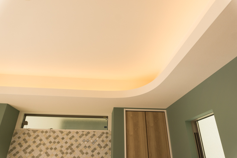 写真の明るさを落とすと分かりやすいのですが、随所に間接照明が取り入れられています。