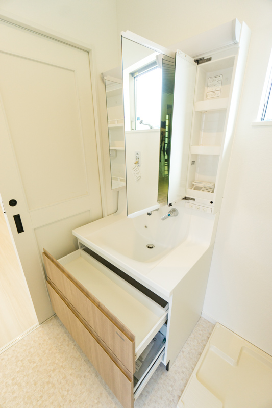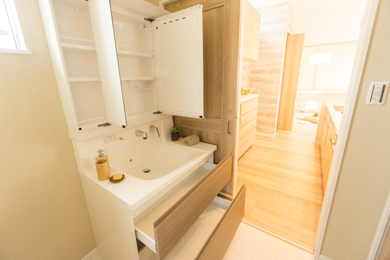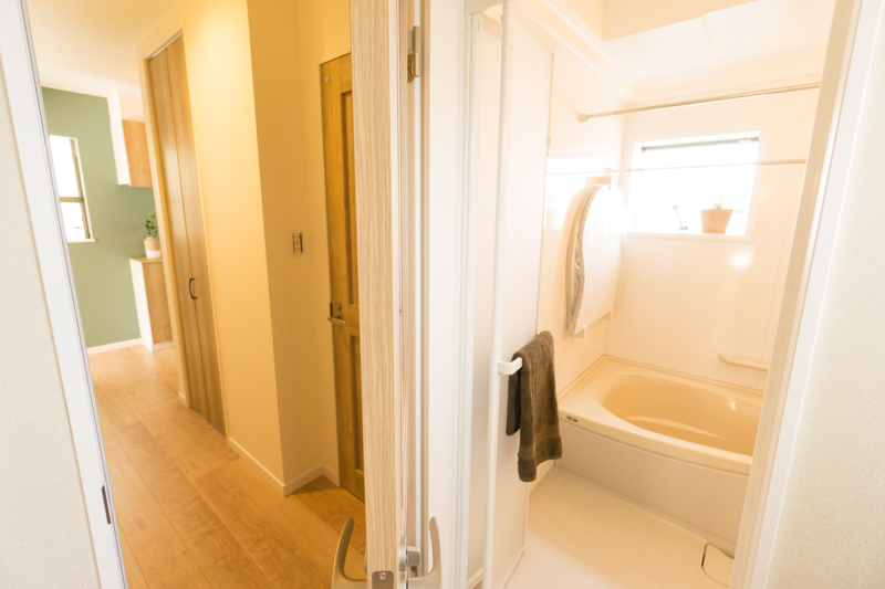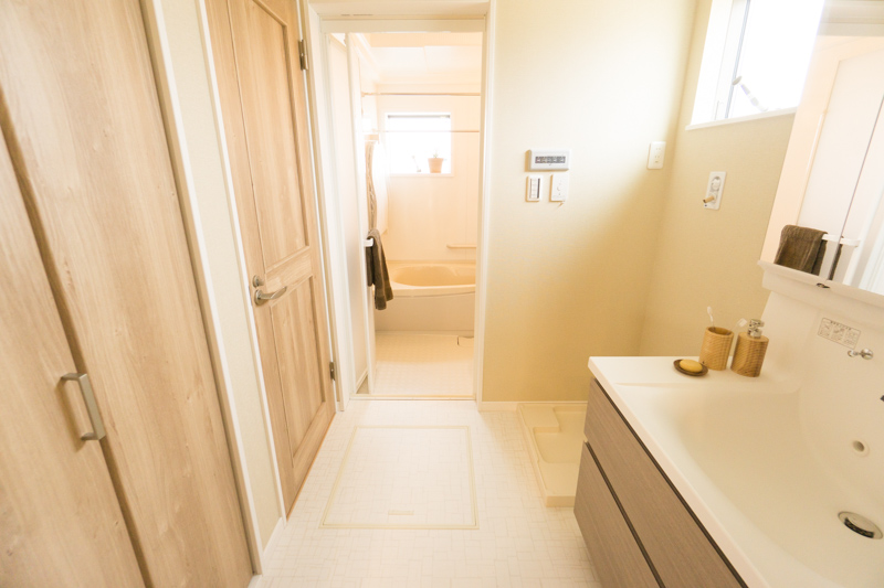 水回り設備が一直線に並んでいることで、動線がよくなり家事効率アップ!!