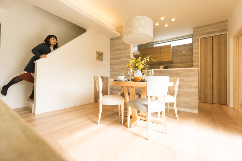 家に帰ってくると必ずリビングを通る設計になっているので、家族が自然と顔を合わせて生活することが出来ます。