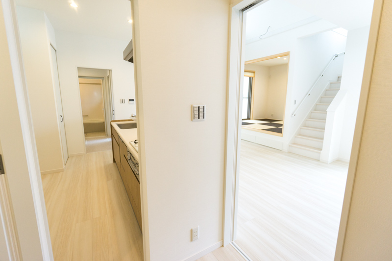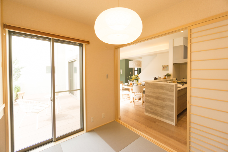 キッチン奥は和室。子どもを和室で遊ばせて、料理をしながら見守ることが出来ます。