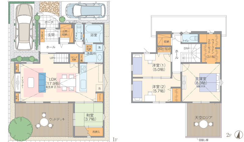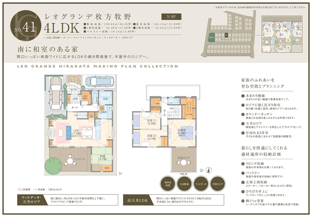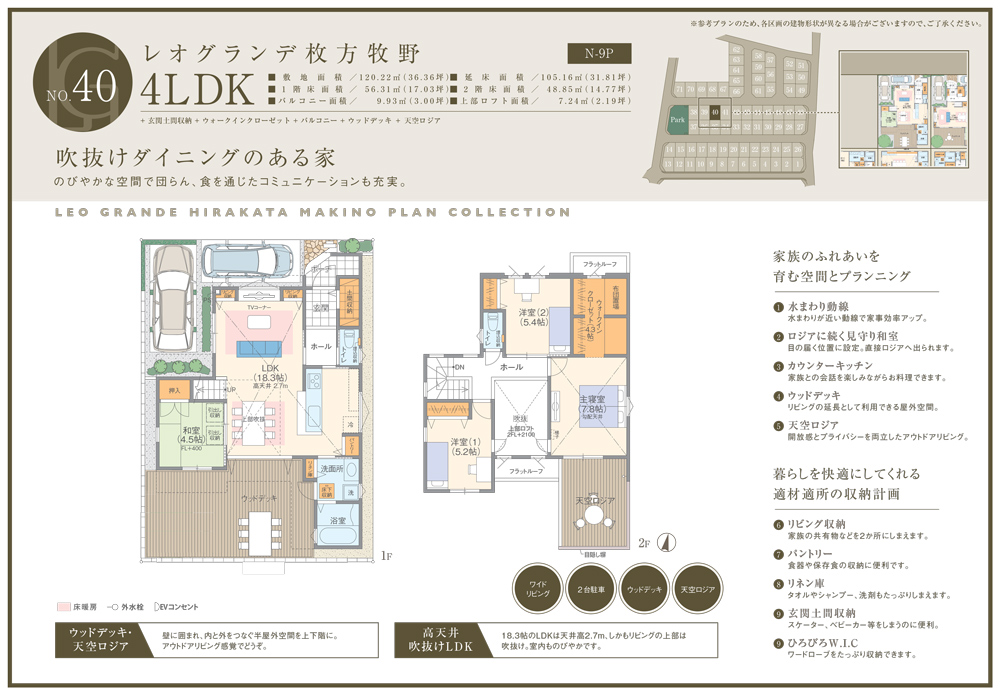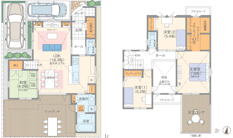 4LDK+玄関土間収納+ヌーク+ウォークインクローゼット+天空ロジア